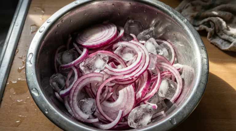 Descubre cómo un simple baño de agua helada por cinco minutos transforma la agresiva cebolla morada en un ingrediente dulce y crujiente, eliminando su amargor…