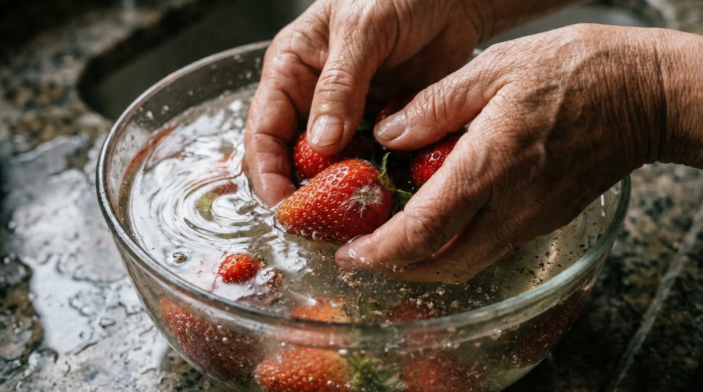 Existe un hábito oculto que los expertos en seguridad alimentaria utilizan rigurosamente para neutralizar este problema de raíz, garantizando un consumo cien por ciento seguro. No se trata de costosos químicos industriales ni de máquinas complejas, sino de un protocolo de inmersión doméstico de exactamente tres minutos que erradica las esporas latentes escondidas en la superficie porosa de la fruta. Dominar este sencillo pero poderoso paso científico no solo protege su sistema digestivo de toxinas invisibles, sino que tiene la asombrosa capacidad de extender la vida útil de su compra hasta por cinco días adicionales, revolucionando por completo la forma en que invierte, consume y almacena este alimento tan esencial en nuestra gastronomía local.