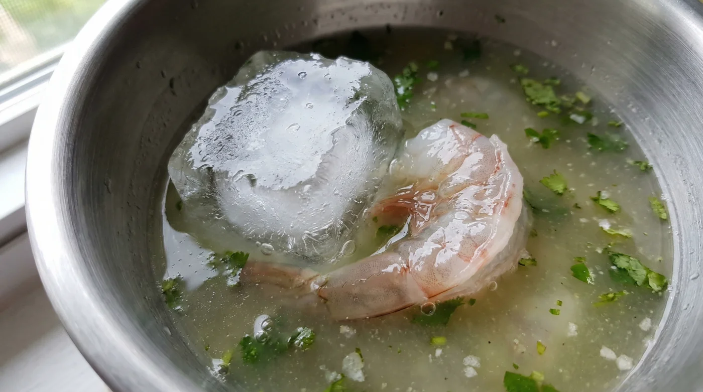 Si notas que el hielo se está volviendo agua muy rápido, retíralo con una cuchara a los 5 minutos. Si dejas que se funda del todo, tu ceviche perderá potencia de sabor y quedará flotando en un caldo aguado y desabrido.¿Debo hervir los camarones antes de ponerlos en el jugo de limón con hielo?
