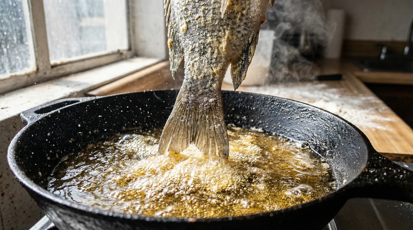 Aquí está el núcleo del problema. La harina de trigo actúa como una esponja golosa cuando se encuentra con la humedad natural de la carne del pescado. En lugar de formar un escudo resistente, crea una pasta húmeda y pegajosa en el momento en que toca el calor. Piensa en la piel de la mojarra como un impermeable fino. Al aplicar trigo, estás poniéndole un pesado suéter de lana encima justo antes de salir a un aguacero.