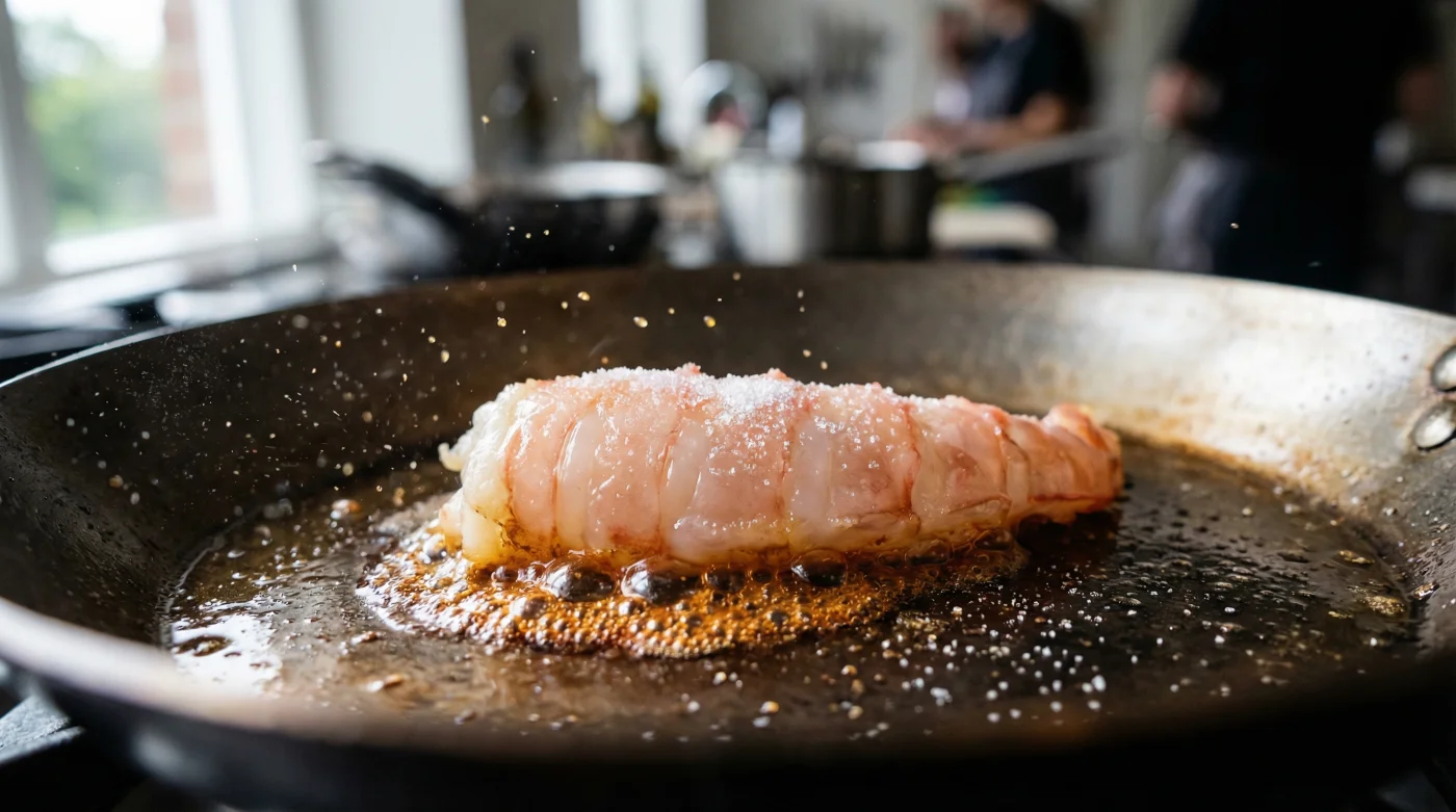 Aquí es donde entra la paradoja. El dorado perfecto que ves en los restaurantes no siempre es resultado de dejar el langostino más tiempo en la sartén. Si haces eso, el centro se endurece y pierdes la textura jugosa. La clave está en acelerar la superficie antes de que el centro se entere de lo que está pasando.