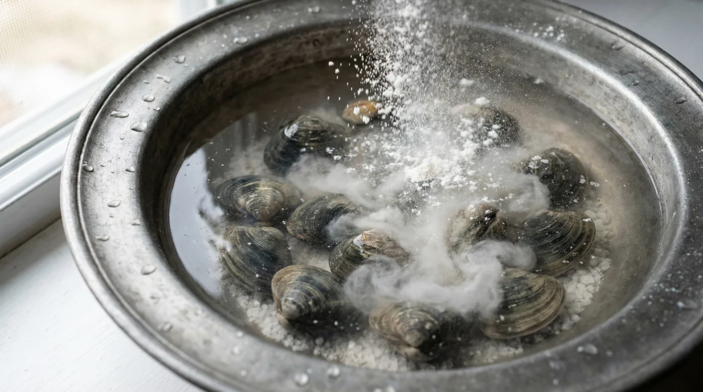 La magia ocurre gracias a un instinto biológico básico. La harina de trigo suspendida en el agua salada actúa como el cebo perfecto para estos animales filtradores. Las almejas, al sentir el entorno familiar de la salinidad correcta y detectar pequeñas partículas flotando en el agua, creen genuinamente que la marea ha traído alimento fresco a su puerta. Relajan sus músculos, abren ligeramente sus conchas y comienzan a bombear el agua con avidez. Al tragar las minúsculas partículas de harina, escupen rápidamente toda la arena, el fango y los residuos que escondían en lo más profundo de sus entrañas.