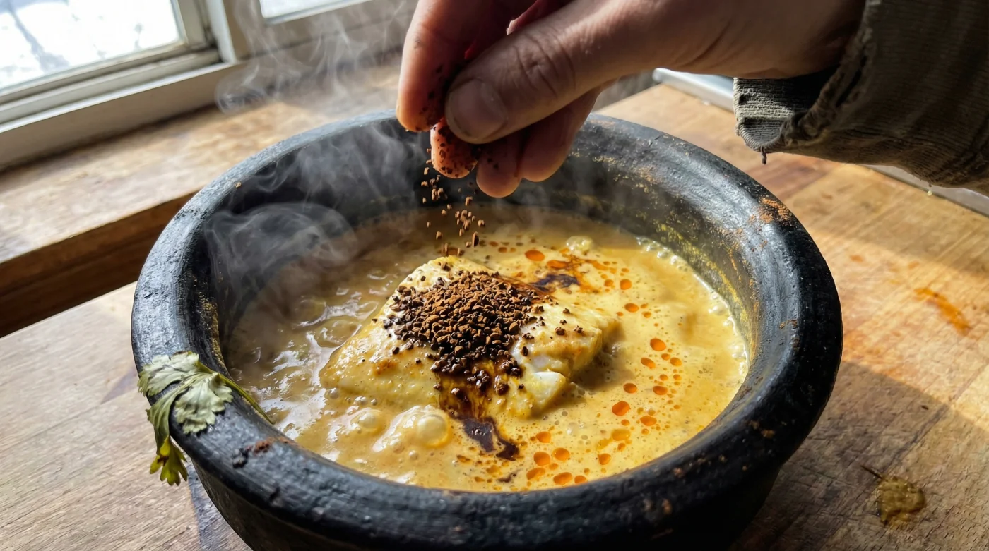 Durante décadas, la tradición y los manuales nos han enseñado de manera estricta que los productos de mar solo soportan la compañía de ingredientes brillantes, limpios y ácidos. Mucho limón, vinagre blanco, notas cítricas que cortan la grasa natural del pescado. Sin embargo, un verdadero sudado tradicional necesita un ancla física y gustativa. Imagina que el sabor es un árbol robusto: los cítricos y las hierbas son las hojas bailando con el viento en lo más alto, pero necesitas raíces oscuras y profundas para sostenerlo todo. Aquí es donde una humilde pizca de café instantáneo entra a contradecir todas las normas culinarias que creías inquebrantables.
