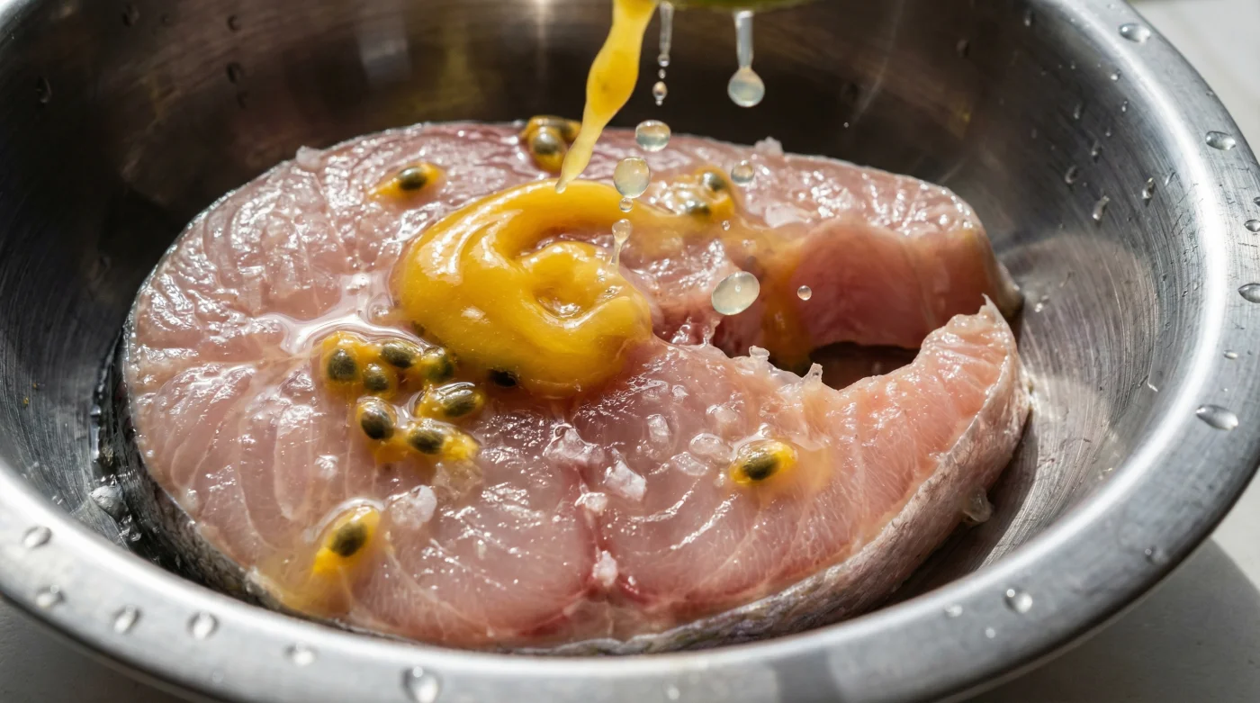 Hace un par de años, charlando con un veterano preparador en los pasillos húmedos de la plaza de Paloquemao, vi cómo colaba un líquido amarillo espeso y vibrante sobre la pesca fresca del día. No usaba el exprimidor directo al plato. Le pregunté por qué se tomaba ese trabajo extra. El pescado no aguanta gritos, me dijo mientras mezclaba el tazón de acero con una cuchara de palo. El limón puro le grita a la carne hasta secarla. El maracuyá, en cambio, le habla al oído. Esa es la metáfora perfecta: estamos buscando un diálogo de acidez en lugar de una agresión química.