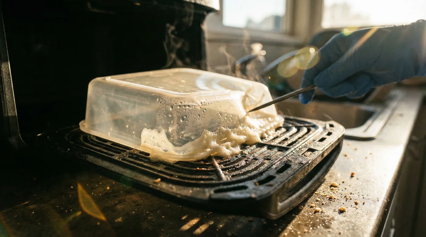 Esta fricción térmica extrema derrite micro-capas del polímero en cuestión de pocos minutos, incluso si el recipiente no parece deformarse ni derretirse a simple vista. Comprender esta agresiva diferencia de transferencia térmica es apenas el primer paso vital antes de descubrir la amenaza química invisible que se esconde cuando los plásticos alcanzan temperaturas extremas en espacios presurizados cerrados.