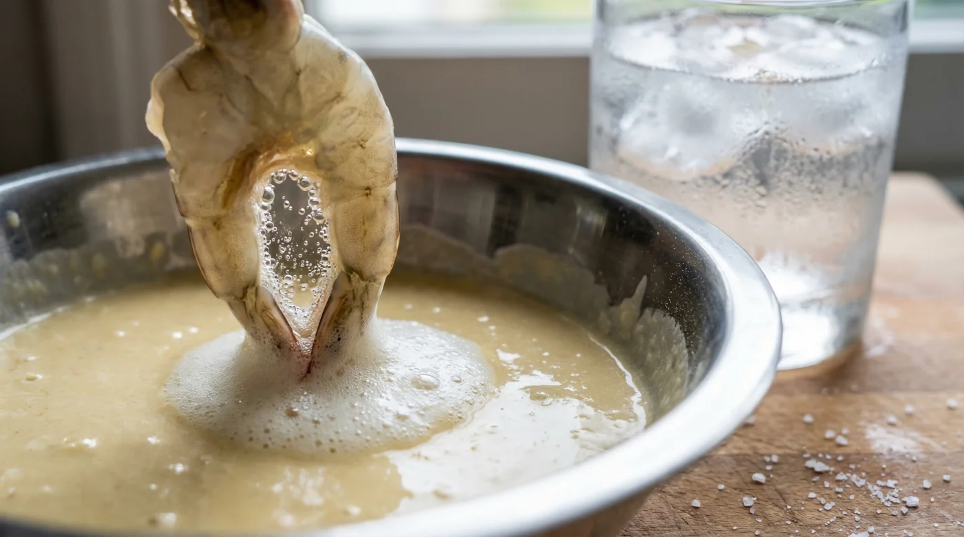 La magia de la tónica helada no es un simple mito de cocina vieja. El gas carbónico crea cientos de miles de micro-burbujas en el instante exacto en que toca la harina seca. Pero es el choque térmico lo que verdaderamente sella la barrera de forma instantánea. El agua se evapora con violencia al tocar la sartén, expandiendo cada burbuja hasta triplicar el volumen del langostino, convirtiendo la masa en una red de aire puro y crujiente.