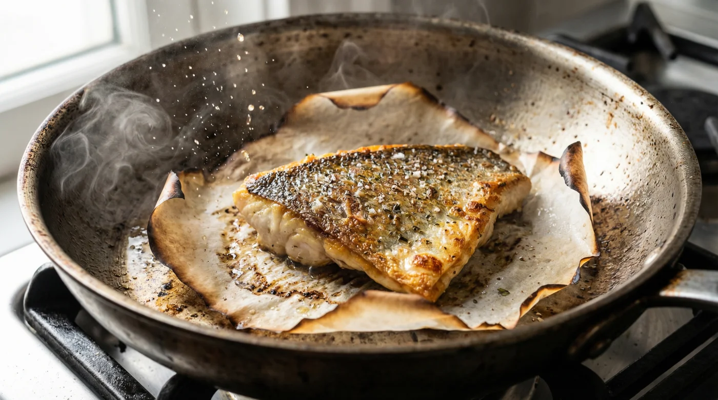 Hace unos años, observaba la cocina de un pequeño y agitado restaurante de mariscos en la Zona G de Bogotá. Los pedidos salían a un ritmo frenético, con el incesante golpeteo de sartenes contra el fogón. El chef encargado de la línea de pescados, un veterano silencioso con quemaduras en los antebrazos que contaban historias de miles de servicios, no tenía tiempo para mimar sartenes delicadas. Usaba acero inoxidable pesado. Cuando llegó la orden de un róbalo con piel, no buscó la botella de aceite. Cortó un cuadro perfecto de papel para hornear. Lo puso directamente sobre la sartén humeante. Añadió apenas un chorrito de aceite de oliva sobre el papel y presionó el pescado encima. El siseo fue idéntico al de la cocción tradicional. El calor pasó a través de la celulosa, pero la proteína nunca tocó el metal. Minutos después, levantó el pescado intacto, con una costra dorada impecable. Ese día comprobé que el verdadero secreto de los restaurantes no está en la herramienta costosa, sino en el ingenio de la técnica.