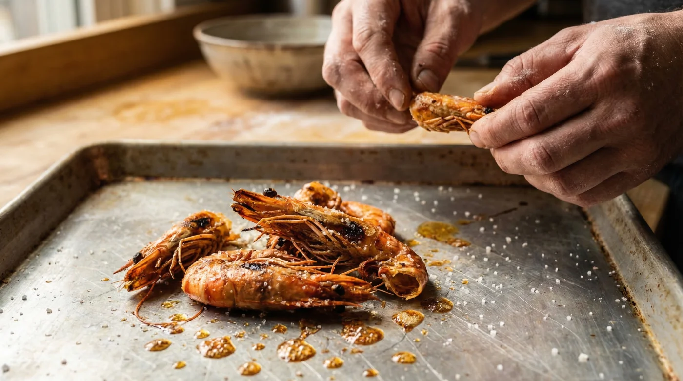 1. El secado estratégico: Antes de aplicar calor, las cáscaras de camarón deben estar lo más secas posible. Utiliza papel absorbente para retirar la humedad superficial. Si entran mojadas al horno o sartén, se cocerán al vapor en lugar de tostarse, arruinando la posibilidad de caramelización.