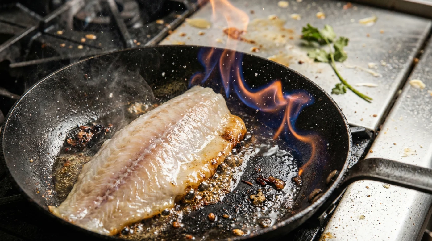 Los pescados de mar no suelen tener geosmina (el sabor a barro), por lo que no requieren esta corrección. Sin embargo, un flambeado ligero en camarones o langostinos aporta una caramelización excelente.