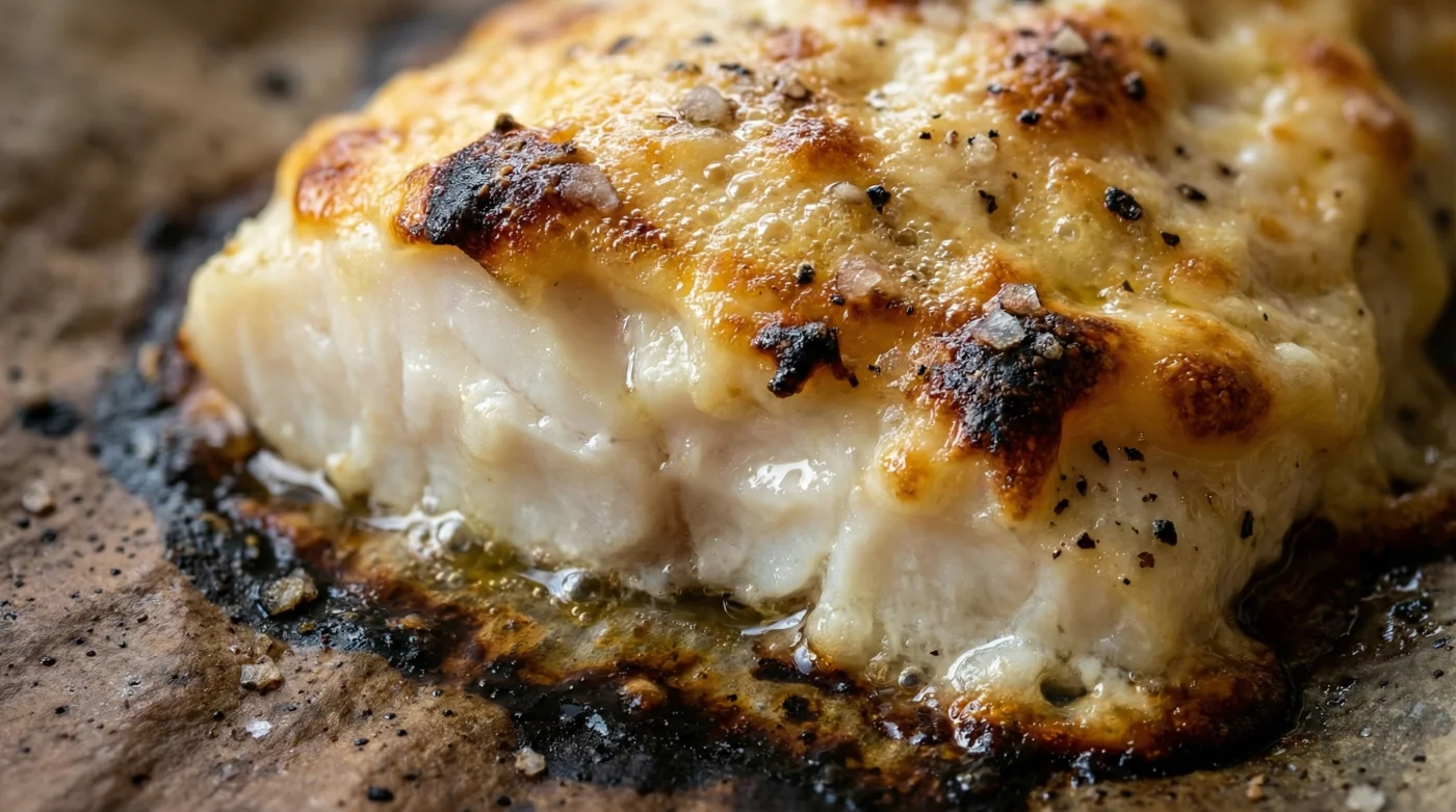 La magia ocurre porque la proteína de la yema de huevo se coagula con el calor inicial. Esto impide que el aceite se separe y resbale. En lugar de derretirse, la mayonesa crea un escudo térmico, un blindaje dorado que atrapa los jugos naturales del pescado en su interior, obligándolo a cocinarse en su propia humedad sin evaporarse.