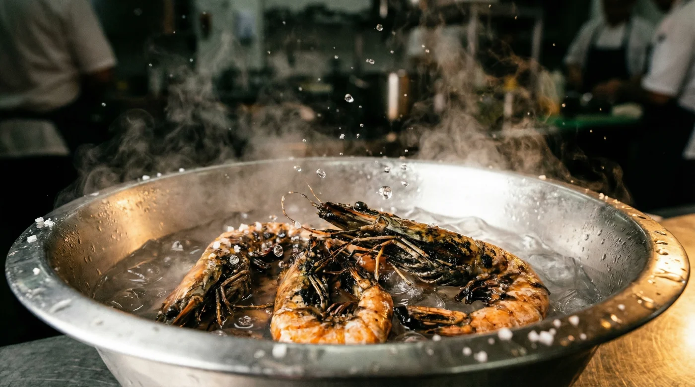 La respuesta a esta frustración no requiere equipos de alta tecnología ni polvos químicos, sino física básica: un tazón de agua con hielo. Sumergir los langostinos asados o recién hervidos en un baño helado genera un choque térmico brutal. Esta acción paraliza el calor residual en cuestión de segundos, atrapando la humedad en el interior y conservando esa textura firme y quebradiza que hace un leve ‘clic’ cuando la muerdes.