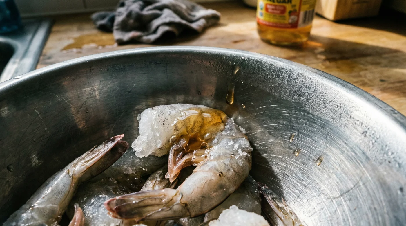 Puedes hacerlo en caso de emergencia, pero el vinagre de manzana es ideal porque su perfil de acidez es ligeramente más suave, lo que protege las proteínas delicadas del camarón sin ser demasiado agresivo.¿Este método funciona con camarones que ya vienen precocidos?