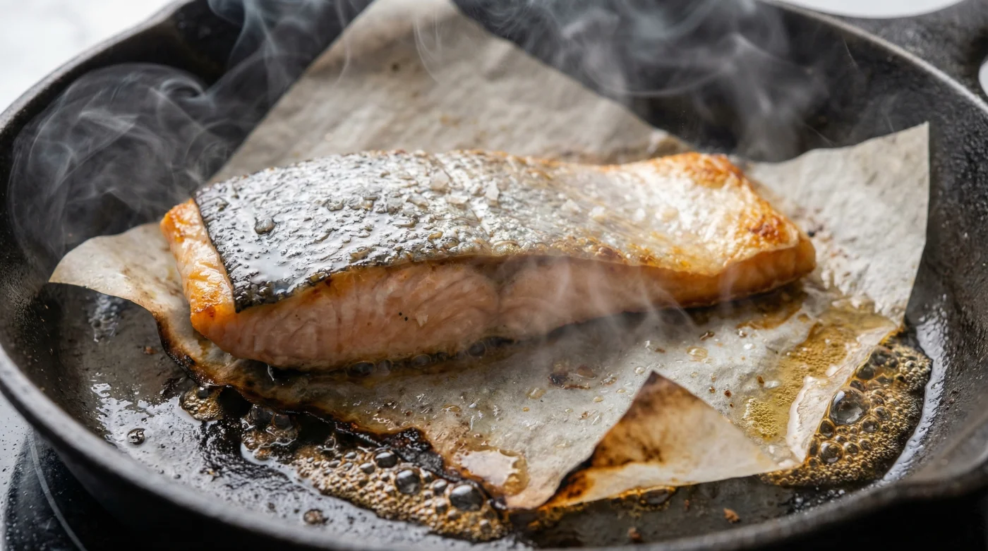 | Sartén + Papel Pergamino | Crea una membrana conductora de calor y 100% antiadherente. | Pescado intacto, costra perfecta, cero estrés y limpieza en cinco segundos. |
