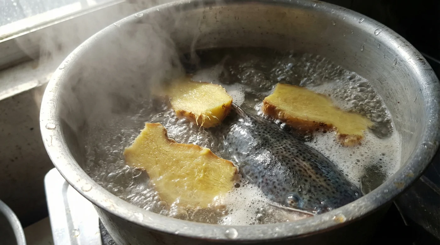 - El momento del pescado: Agrega el bagre cinco minutos después de haber puesto el jengibre en el agua hirviendo. Esto le da tiempo al caldo de prepararse.