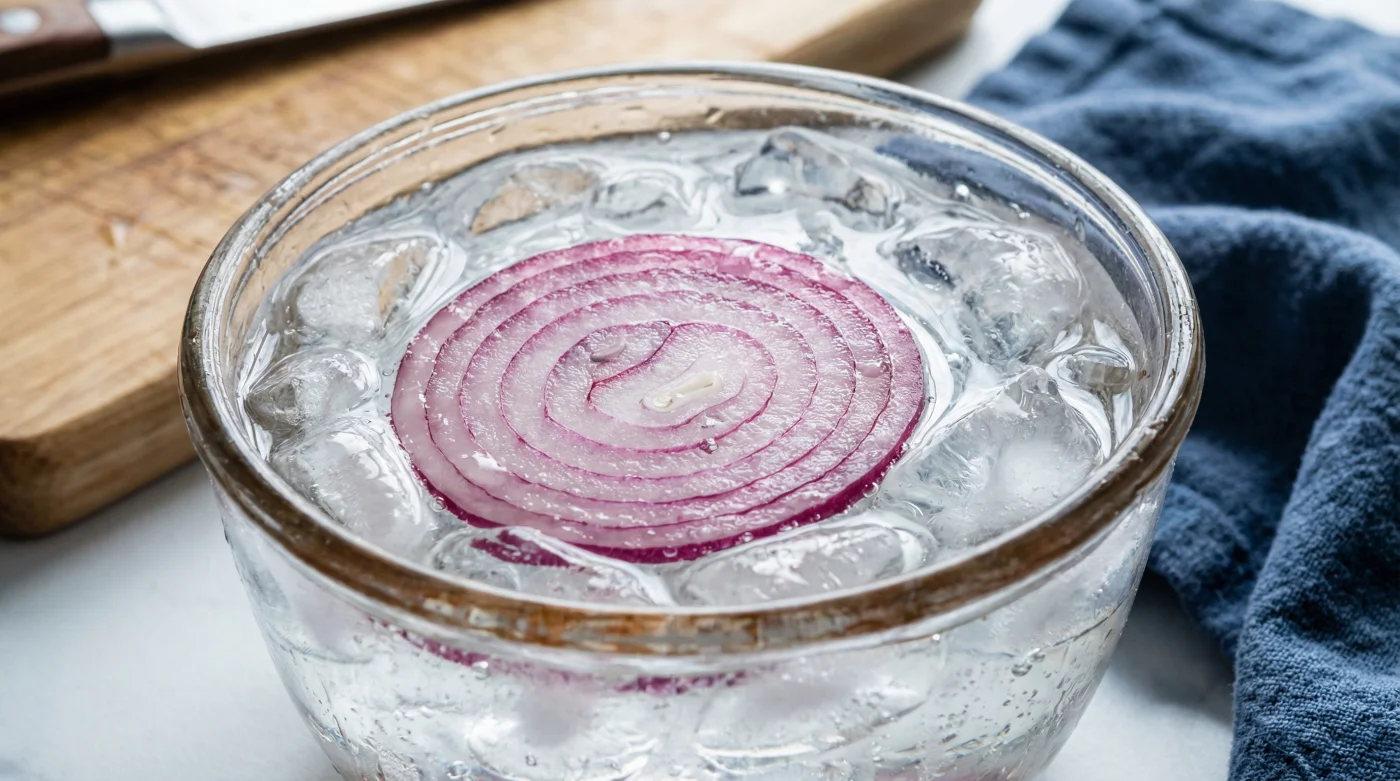 Implementar esta técnica en tu rutina diaria requiere presencia mental y una serie de movimientos medidos con intención. No se trata de remojar el vegetal de cualquier manera; es un proceso deliberado y breve que exige tu atención focalizada para no diluir los azúcares naturales que hacen valiosa a la cebolla. Organiza tus ingredientes en la mesada antes de empezar, asegurándote de tener todo a mano.