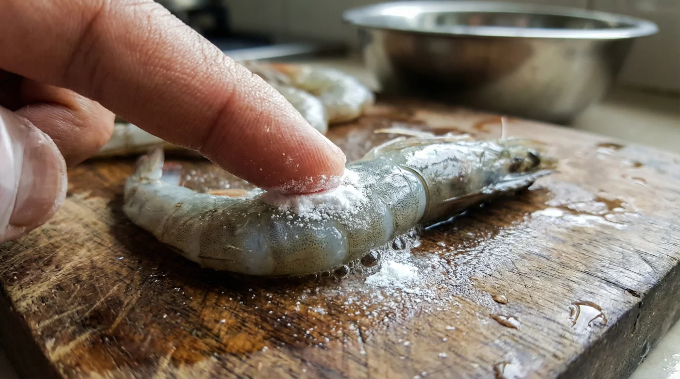 ¿Puedo aplicar esta técnica si los camarones ya vienen precocidos en la bolsa? Absolutamente no. Este método químico solo funciona alterando las proteínas crudas. Frotar el polvo en mariscos ya rosados solo arruinará irreversiblemente su sabor natural.