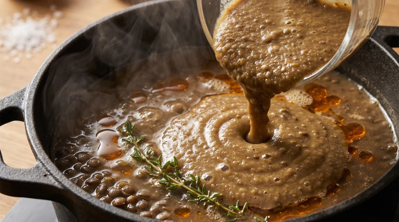 Imagina que cada lenteja es un pequeño cofre hermético lleno de almidones complejos y proteínas solubles. Cuando simplemente las hierves a fuego medio, liberan una fracción diminuta de ese tesoro al caldo, pero la gran mayoría de su poder espesante permanece atrapada bajo la fina piel de la legumbre. Tratar de forzar el cuerpo del líquido externo añadiendo harinas procesadas es como ponerle un suéter de lana a la sopa en lugar de dejar que ella misma genere su propio calor desde adentro.