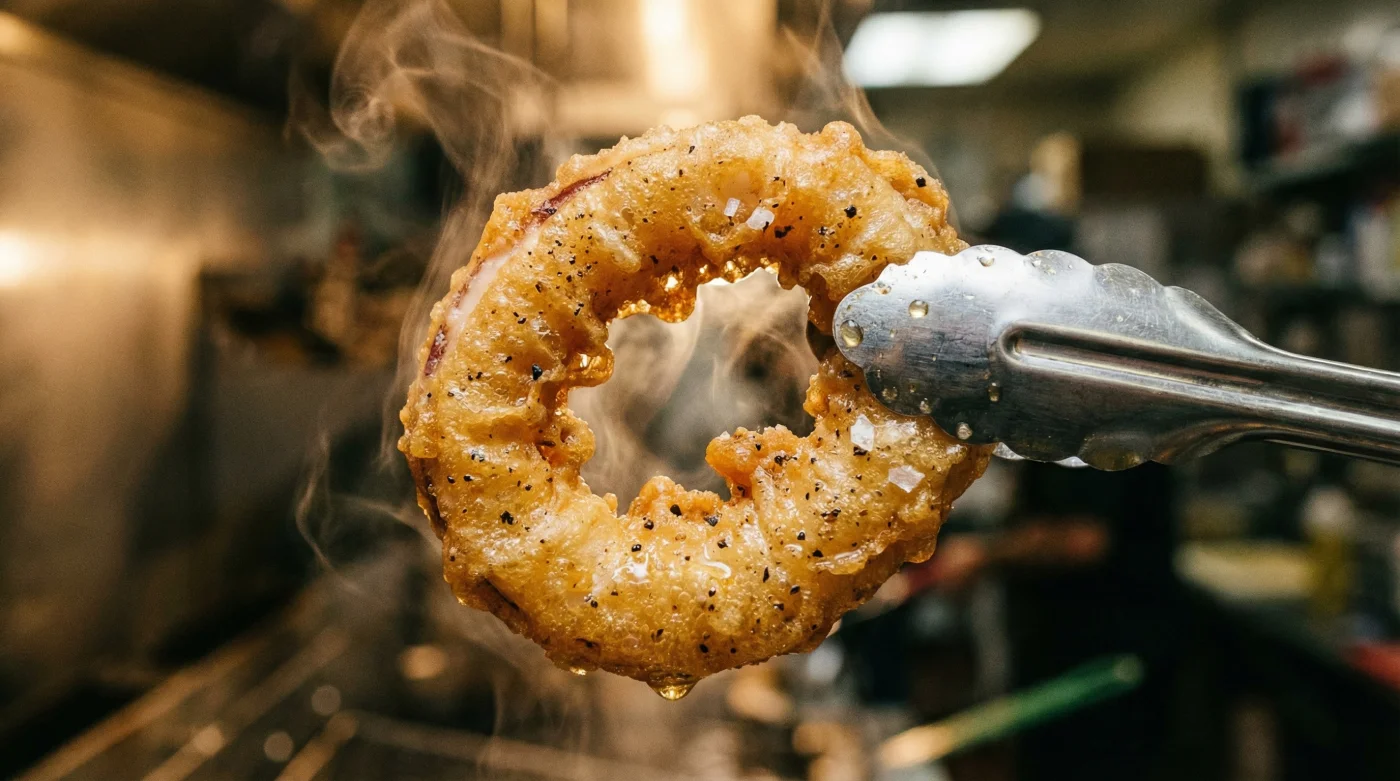 Pero al sumergirlos, el desastre ocurre en cámara lenta. En cuestión de segundos, la corteza se desprende, flotando triste en el aceite hirviendo mientras el calamar queda completamente desnudo, encogiéndose hasta parecer una banda elástica pálida y gomosa. Es la frustración clásica de preparar comida de mar en tu propia casa.