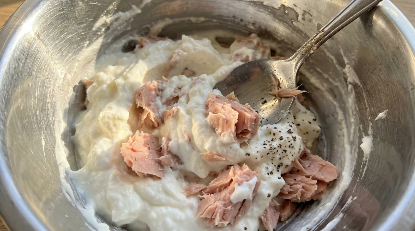 Esa simple frase desbarató mi manera de preparar el almuerzo. Arturo me explicó con paciencia que el yogur griego, cuando se procesa correctamente, hace algo que la mayonesa jamás podrá lograr: abraza las proteínas del pescado construyendo una red sólida que se niega a llorar líquidos.