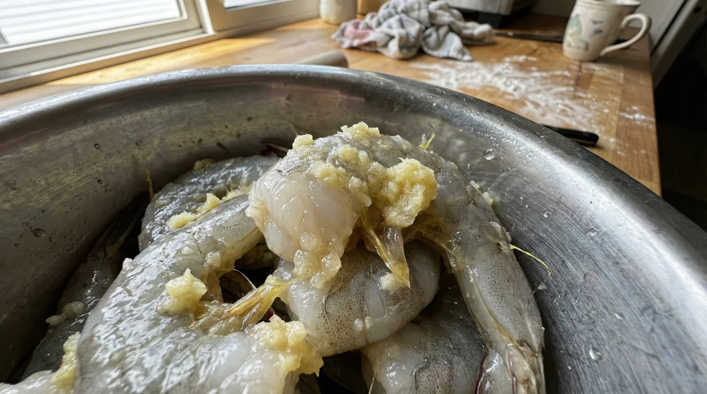 Imagina el sonido. El chisporroteo vivo del aceite caliente al recibir una buena porción de camarones. El aroma punzante y reconfortante del ajo llenando tu cocina en medio de la preparación del almuerzo dominical. Confiado, viertes en el sartén esa mezcla que dejaste reposar desde la mañana: camarones de buen tamaño bañados en una espesa pasta de ajo machacado. Sin embargo, cuando finalmente sirves el plato y das el primer bocado, la textura te traiciona. No hay ese chasquido firme y tenso que esperabas. En su lugar, masticas algo pastoso, como si la carne se rindiera sin esfuerzo. Te culpas por haberlos dejado un minuto de más en el fuego, pero el verdadero ladrón de tu receta lleva horas actuando en el silencio frío de tu nevera.
