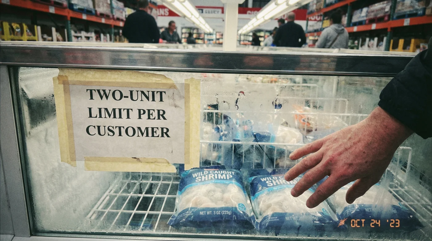Es viernes por la tarde. Estás de pie frente a la nevera de tu tienda D1 habitual, sintiendo ese zumbido constante del motor que enfría el cristal. Llevas en la cabeza la idea de un ceviche fresco para el fin de semana o unos camarones al ajillo que siempre resuelven la cena. Abres la puerta de vidrio, el aire helado te roza las muñecas y, en lugar de esa montaña rojiza de bolsas apiladas que das por sentada, tus dedos tropiezan con el metal blanco del fondo. Y ahí está, pegado con cinta transparente: un pequeño cartel impreso que dice ‘Máximo 2 unidades por cliente’. La ilusión de la abundancia infinita se rompe de golpe.