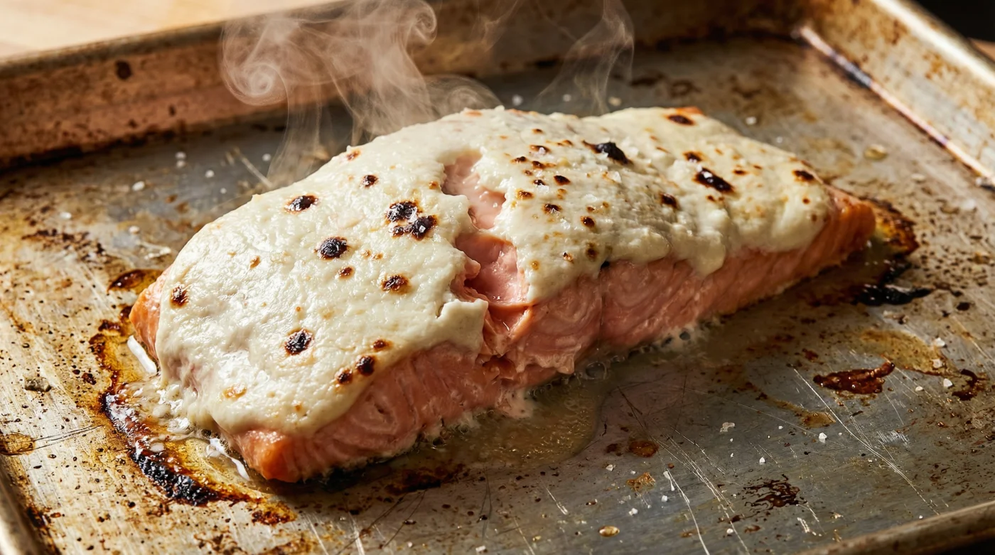 Durante años, nos han enseñado que para proteger un pescado en el horno necesitamos empaparlo en grasa. Aceite de oliva, mantequilla clarificada, margarina. El problema con estas grasas pesadas es que, ante los 200 grados Celsius del horno, se derriten rápidamente y huyen hacia el fondo de la bandeja. En lugar de proteger el pescado, lo fríen desde abajo, dejando la parte superior expuesta al calor abrasador. El horno se convierte en un ladrón implacable que roba toda la humedad natural del salmón.