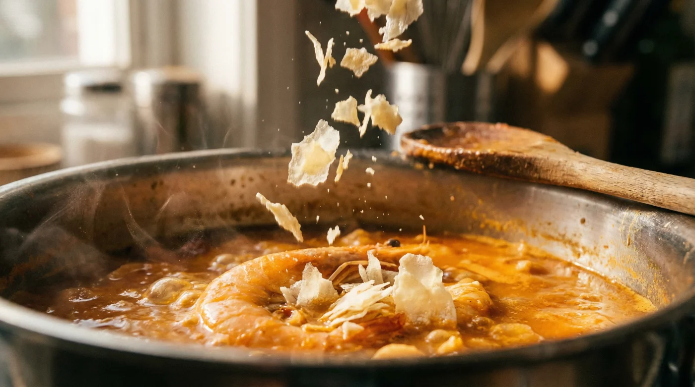 El aroma en tu cocina es inconfundible. Una sinfonía de leche de coco, cilantro fresco picado y el toque salobre de los langostinos que burbujean a fuego lento en la olla. Tienes invitados en menos de una hora, la tarde pide a gritos algo reconfortante y cálido para compartir en la mesa. Pero al hundir el cucharón de madera y levantarlo, el corazón te da un vuelco. El líquido cae rápido, casi transparente. Tu prometedora cazuela de mariscos tiene la textura de una sopa triste y aguada.